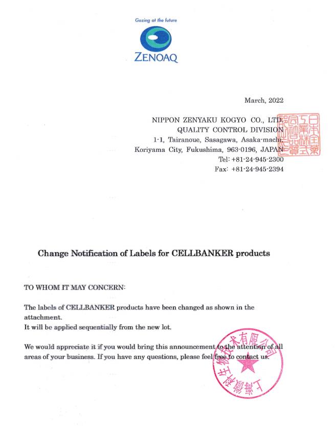 Cellbanker產(chǎn)品標簽更換申明